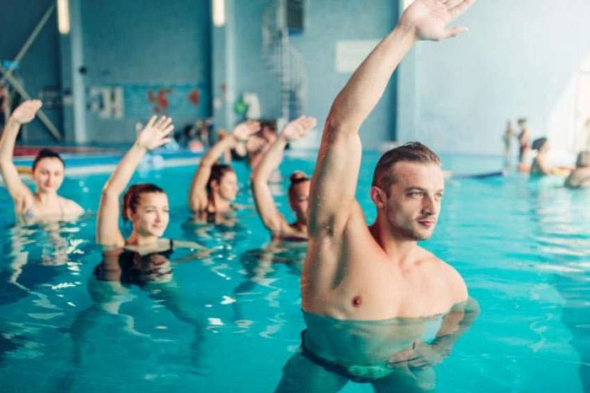 Die gelenkschonenden Eigenschaften des Wassers werden bei der Aqua-Fitness ausgenutzt. Der Begriff Aqua-Fitness umfasst sowohl das Aquajogging als auch Aerobic im Wasser zu rhythmischer Musik, gegebenenfalls mit Zusatzmaterialien (Hartgummi-Hanteln, Gummibälle, Schwimmbretter, Stepper, "Pool-Nudeln" etc.). Infolge des "Antriebes durch Auftrieb" kommt es auch bei der Wassergymnastik weder zu Gelenkproblemen noch zu muskulärer Überforderung.
